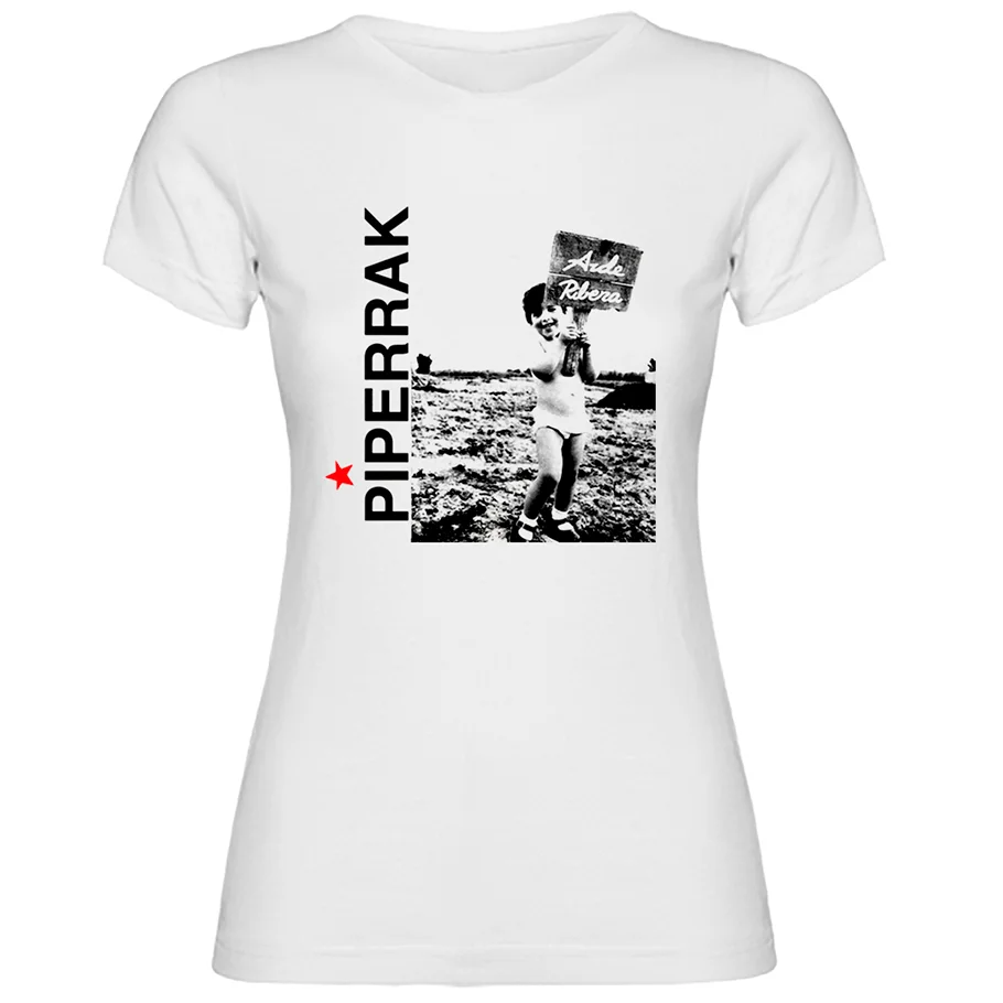Camiseta Piperrak Arde Ribera de manga corta en color blanca de mujer 100% algodón.